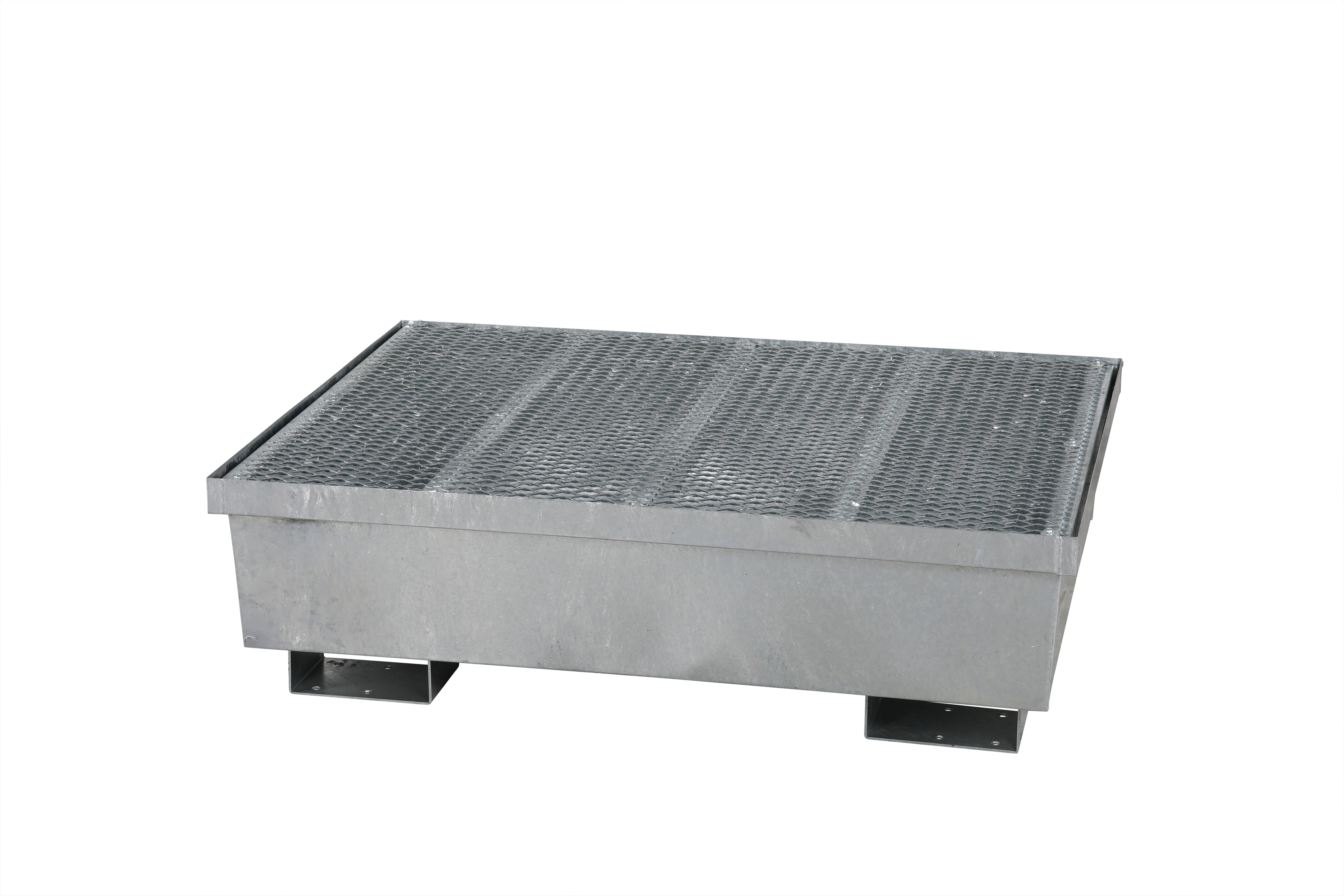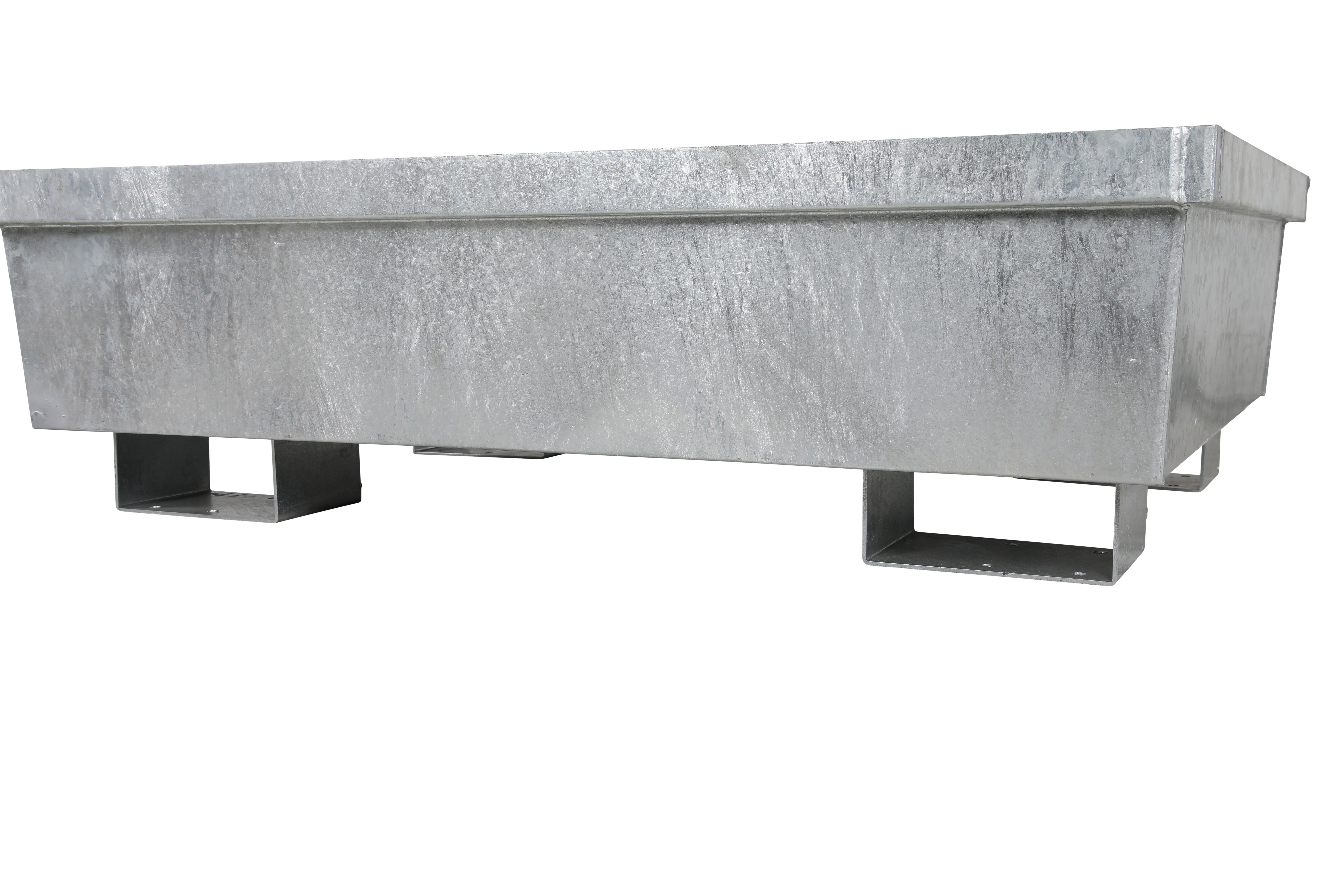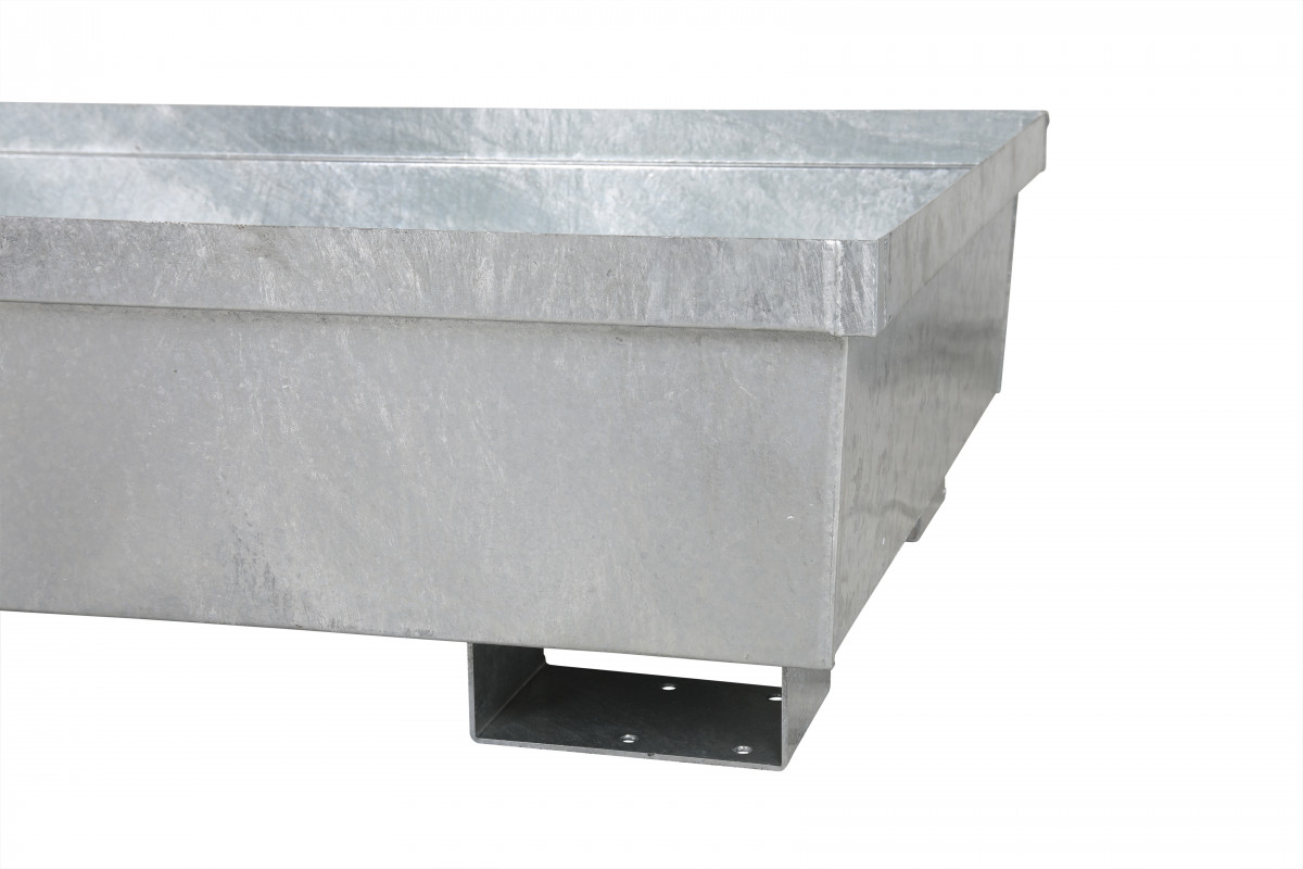 Fatbassäng i galvaniserat stål för tuffare miljöer. Ram med galler att lägga uppe på för fatförvaring köps till separat på artikelnummer 2512022021.